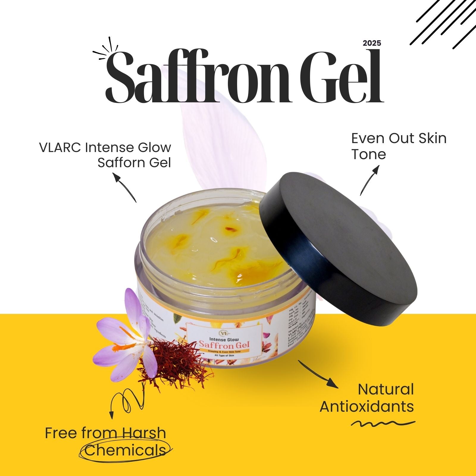 Treat your skin to the natural goodness of VLARC Intense Glow Saffron Gel and reveal smoother, brighter, and healthier-looking skin—naturally!